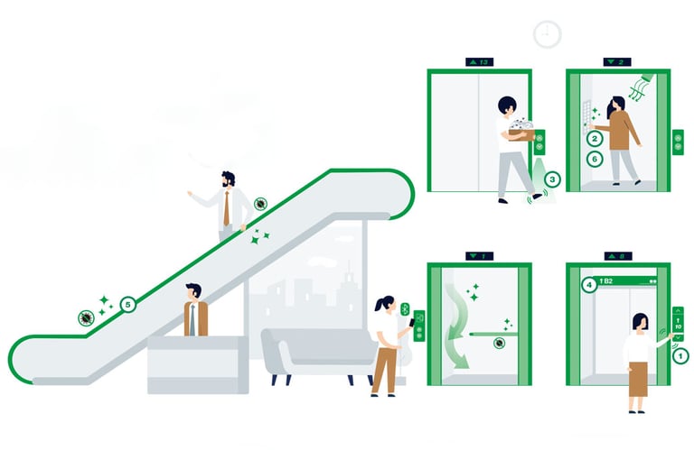 Hyundai Elevator enhances safety and cleanliness by minimizing skin-to-surface contact in elevators, escalators, and moving walks. With our Clean Moving Solutions, you can travel touch-free with ease.