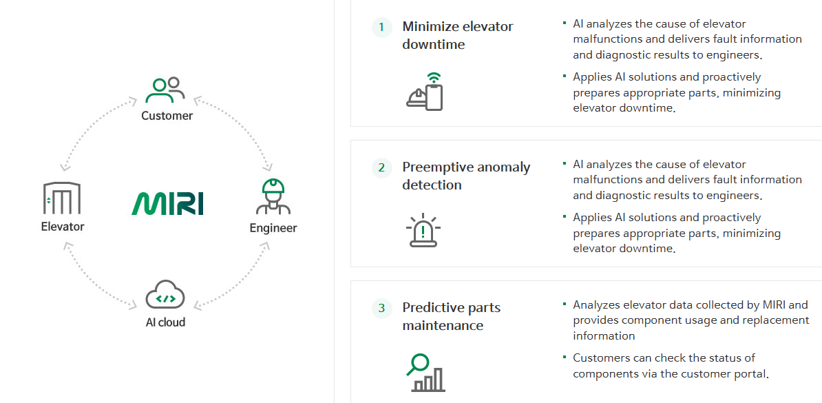 MIRI, Hyundai Elevator's AI maintenance service, uses big data analysis to detect