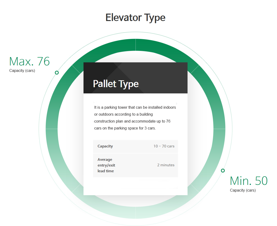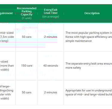 The parking system incorporates all the technology and expertise of Hyundai Elevator. Maximum space efficiency, minimum management cost and distinguished service will ensure convenience for both users and operators and raise the value of the building.