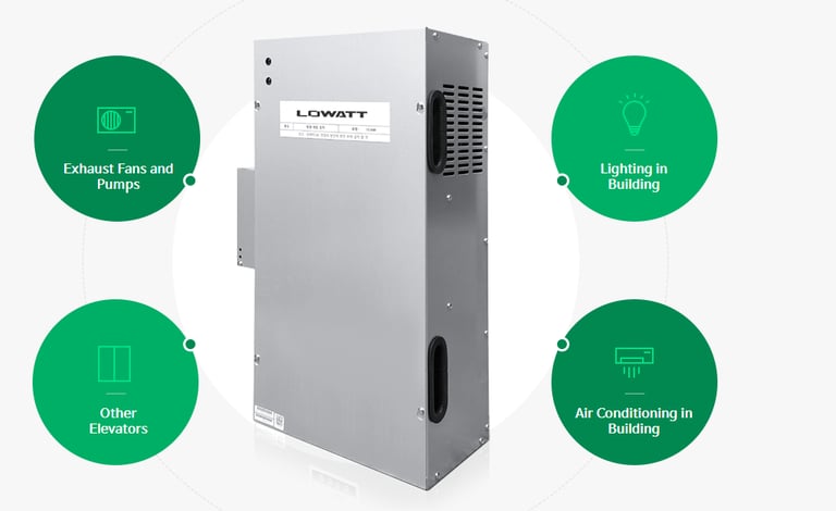 A regenerative inverter is an innovative green technology that captures and reuses energy generated during elevator operation. By recycling otherwise wasted power, it enhances efficiency and achieves energy savings of up to 64%.