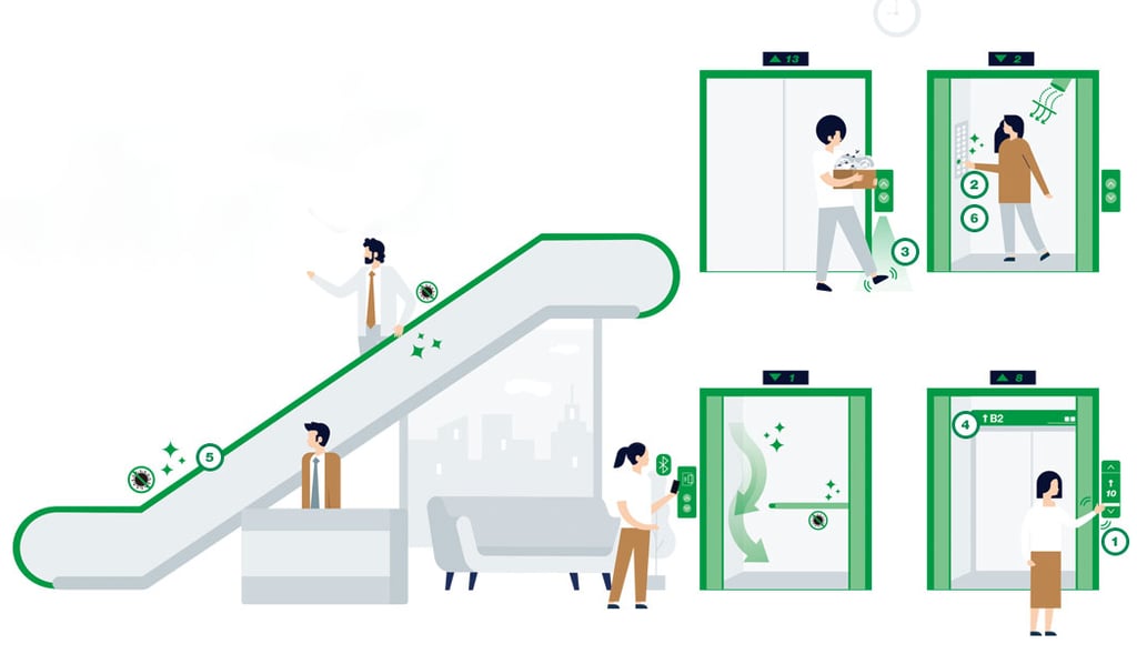 Hyundai Elevator enhances safety and cleanliness by minimizing skin-to-surface contact in elevators, escalators, and moving walks. With our Clean Moving Solutions, you can travel effortlessly without direct touch, ensuring a safer and more hygienic experience.